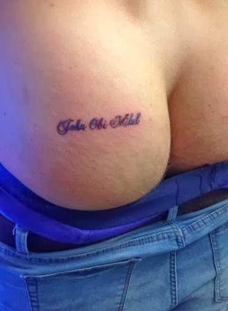 Chelsea fan, Lee Mitchell wrote on his twitter page on Sunday January 5th that he will tattoo Mikel's name or Chelsea badge on his butt if the Chelsea midfielder scored against Derby in the FA Cup. He probably thought the chances of Mikel scoring was very low...because the Nigerian player had only scored 3 goals in his seven-and-a-half years at Stamford Bridge. Unfortunately for Lee that day Mikel scored his fourth goal.Lee Mitchell went through with his promise and got the tattoo. See the photos after the cut...
